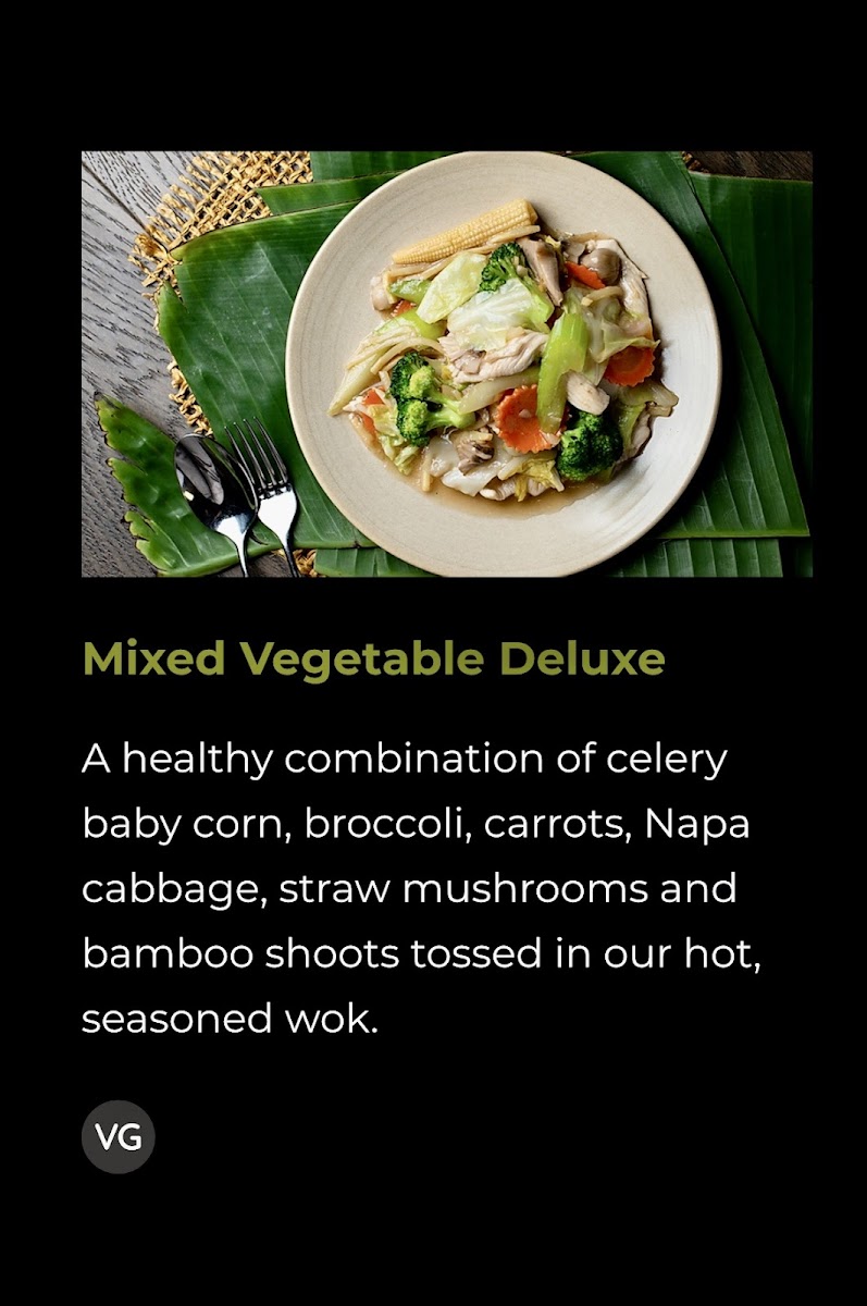 Appetizers and Light Bites: This section includes items such as fresh rolls with tofu, fried spring rolls, chicken satay, crab wontons, and chicken wraps. These selections provide a range of flavors and textures suitable for starters or lighter meals.